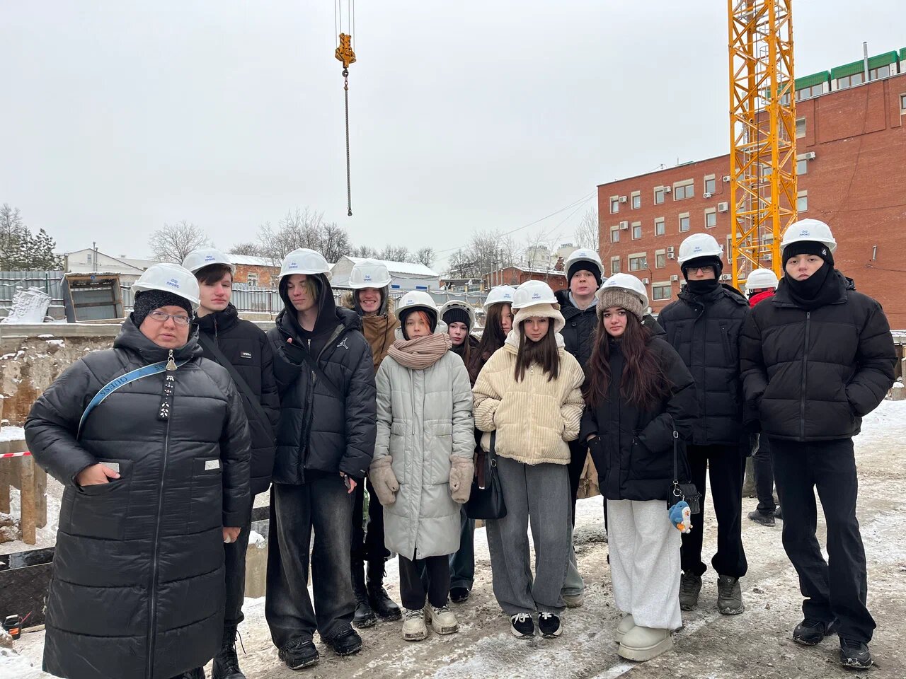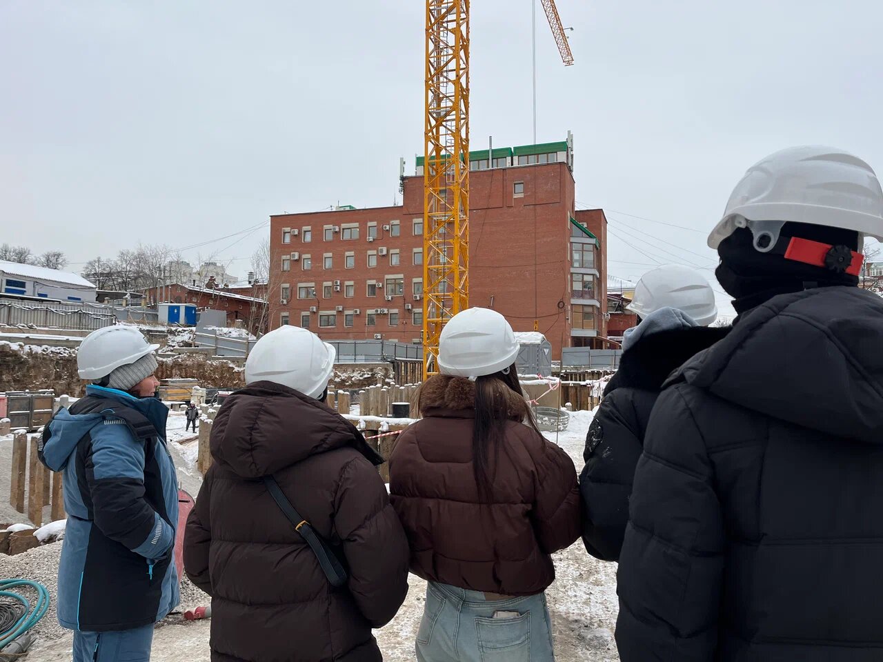 Руководитель проекта лично провел для ребят подробную экскурсию, рассказав не только об особенностях текущего объекта, но и о тонкостях работы современного строителя — от чтения проектной документации до управления процессами на площадке.